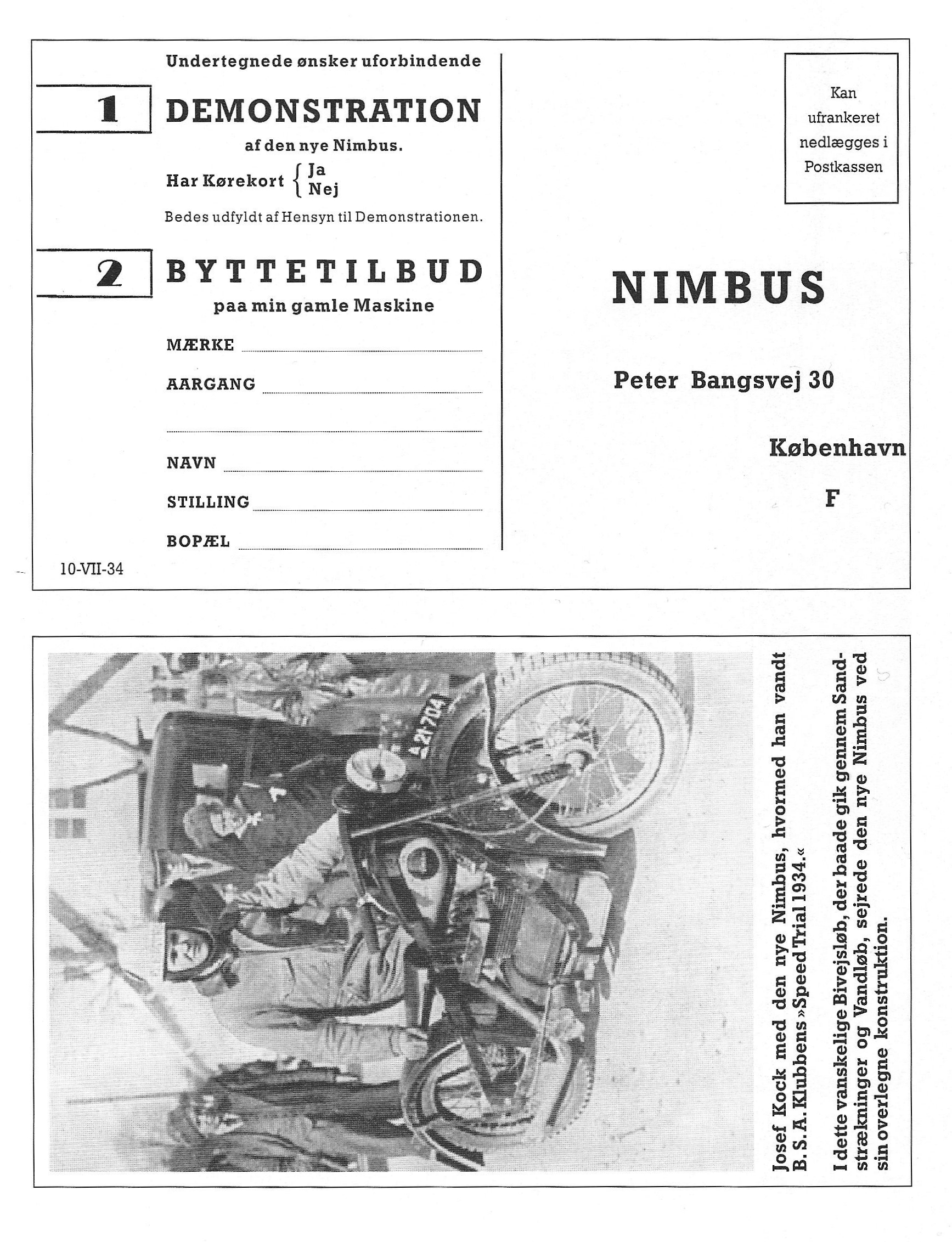 [Photograph] Josef Koch with his new Nimbus, on which he won the “1934 Speed Trial” of the B.S.A. club. During this demanding race over secondary roads, stretches of sand and through water, the new Nimbus, with its superior construction, triumphed.