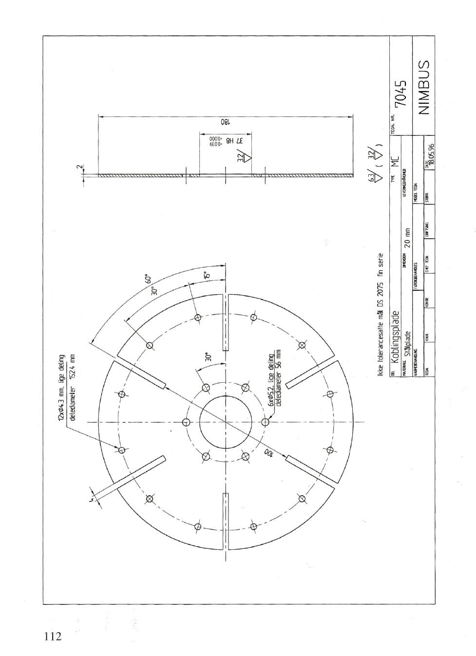 [Translation of page 112] 12 x Ø 4.3mm, equidistant between holes Pitch diameter 152.4 mm No tolerance determined, requirement per Danish Standard 2075 fine series